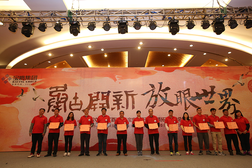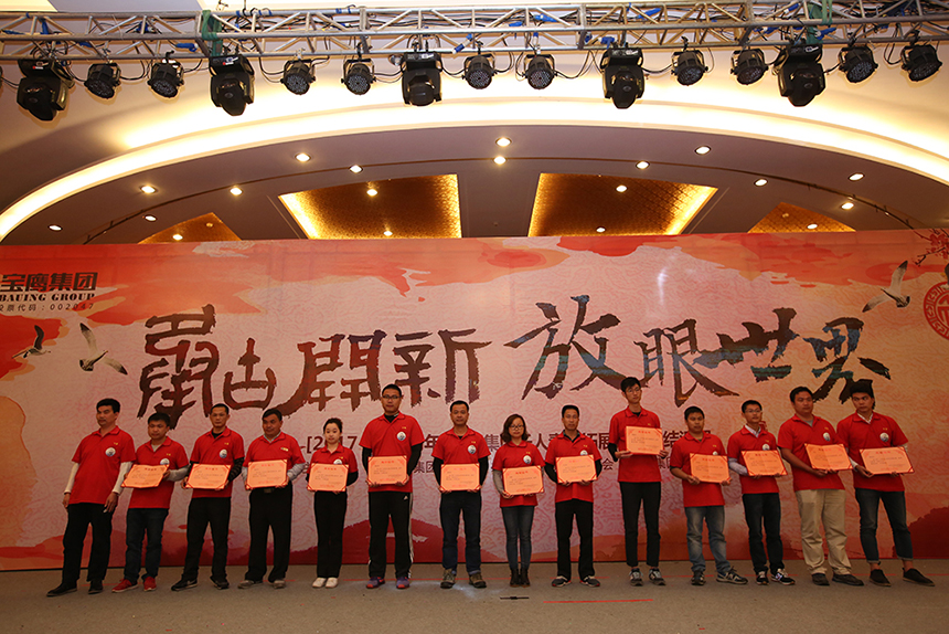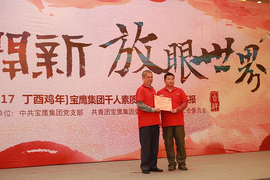 ▲寶鷹集團副總裁戴宏為優(yōu)秀員工頒獎