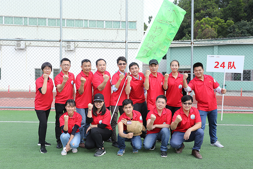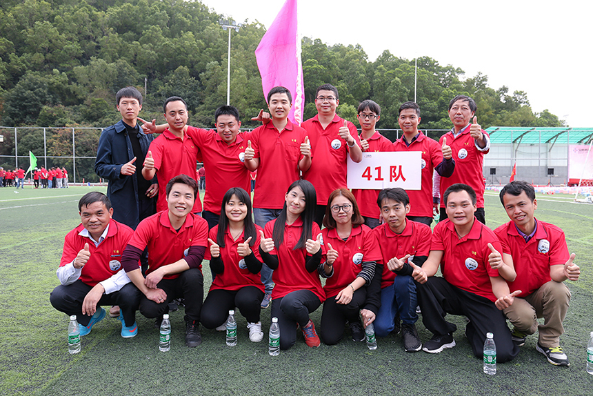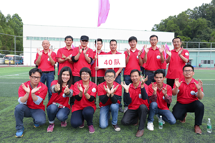 ▲寶鷹集團董事局主席古少明與部分十年以上資深員工拍照合影
