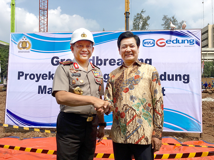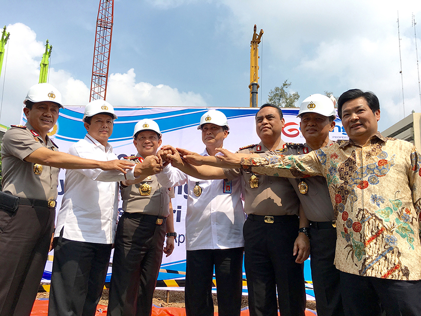 簽約儀式前的當(dāng)天上午,古少明主席還出席了由印尼國(guó)有建設(shè)公司(WIKA)承建的印尼國(guó)家警察犯罪調(diào)查大樓奠基儀式。奠基儀式上,古少明主席與四星上將、印尼國(guó)家警察總長(zhǎng)蒂多Tito Karnavian, 印尼國(guó)家警察副總長(zhǎng)薩夫魯丁Syafruddin, 犯罪調(diào)查局局長(zhǎng)阿里Ari Dono Sukmanto就未來(lái)可能存在的項(xiàng)目合作進(jìn)行了洽談。