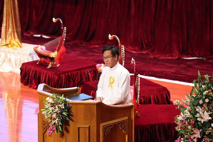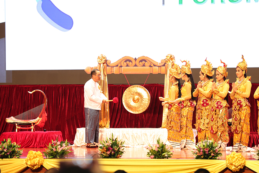 ▲緬甸副總統(tǒng)吳敏瑞為論壇鳴鑼開幕