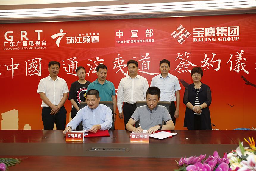根據(jù)雙方合作協(xié)議,寶鷹集團(tuán)將在越南、緬甸、印尼等海上絲綢之路上沿線國(guó)家為本紀(jì)錄片的攝制提供支持和保障。廣東廣播電視臺(tái)珠江頻道負(fù)責(zé)人倪卓宏、寶鷹集團(tuán)副總裁古樸代表雙方簽訂了聯(lián)合制作協(xié)議。這也是雙方自2015年聯(lián)合舉辦“寶鷹杯國(guó)際書畫印創(chuàng)作大賽”、2016年合作“印尼寶鷹中國(guó)書畫邀請(qǐng)展”后的第三次攜手。