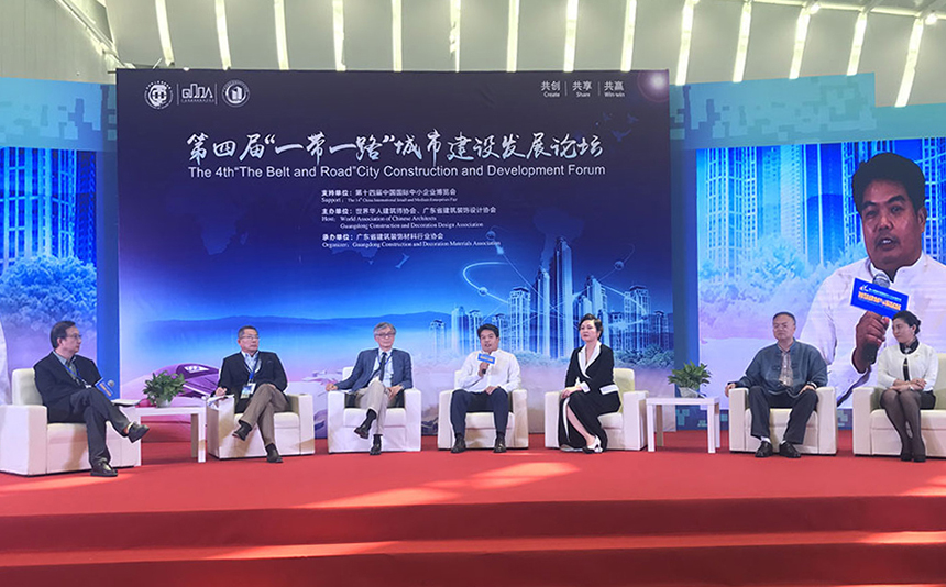 德國(guó)著名建筑大師蓋博、吉爾吉斯斯坦經(jīng)濟(jì)部投資促進(jìn)署署長(zhǎng)奧倫姆茲別克、中國(guó)-東盟商務(wù)理事會(huì)執(zhí)行理事長(zhǎng)許寧寧、世界華人建筑師協(xié)會(huì)會(huì)長(zhǎng)沈埃迪、廣東省建筑裝飾材料行業(yè)協(xié)會(huì)與廣東省建筑裝飾設(shè)計(jì)協(xié)會(huì)會(huì)長(zhǎng)蘭芳以及香港建筑師注冊(cè)管理局主席戚務(wù)誠(chéng)、寶鷹股份董事長(zhǎng)古少波分別就一帶一路城市建設(shè)中的發(fā)展需求、建筑師價(jià)值體現(xiàn)、中國(guó)產(chǎn)品標(biāo)準(zhǔn)與國(guó)外的差異、企業(yè)走出去與當(dāng)?shù)匚幕某薪踊ト诘茸h題展開(kāi)了深入交流與探討。