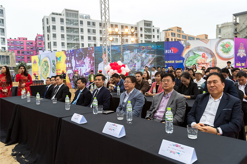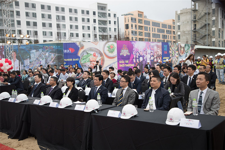 中國駐峴港總領(lǐng)事館副總領(lǐng)事劉志、副領(lǐng)事李盈盈,峴港市規(guī)劃發(fā)展局局長黎景陽,越南成都投資開發(fā)與建設(shè)股份公司總經(jīng)理阮成南、副總經(jīng)理鄭越興,深圳市裝飾行業(yè)協(xié)會會長高剛,寶鷹集團(tuán)董事局主席古少明等領(lǐng)導(dǎo)出席奠基儀式。
