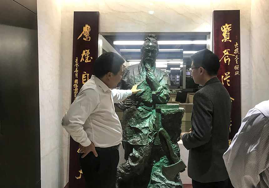劉自鴻博士一行在古少波董事長的陪同下參觀了寶鷹集團(tuán)辦公環(huán)境及寶鷹美術(shù)館,他高度評價了寶鷹集團(tuán)的產(chǎn)業(yè)布局及戰(zhàn)略眼光,通過對寶鷹集團(tuán)的了解,對其在建筑裝飾行業(yè)中展現(xiàn)出的工匠精神與濃厚企業(yè)文化點(diǎn)贊。