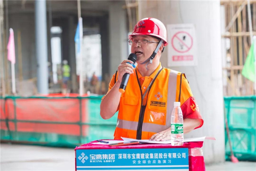 寶鷹集團總工程師、副總裁王建國強調安全生產(chǎn)無小事,寶鷹集團始終堅持并不斷加強應急安全管理理念,為員工的生命財產(chǎn)負責,為客戶負責,以“生命至上,安全發(fā)展”的安全管理理念為柔宇項目建設保駕護航。