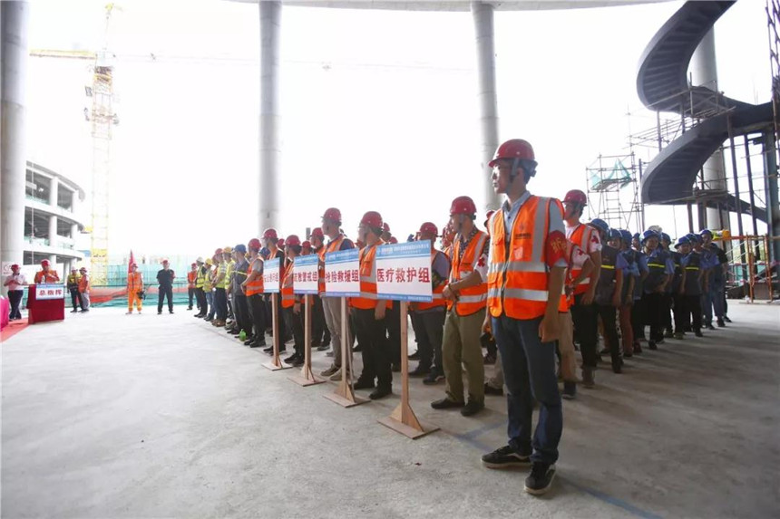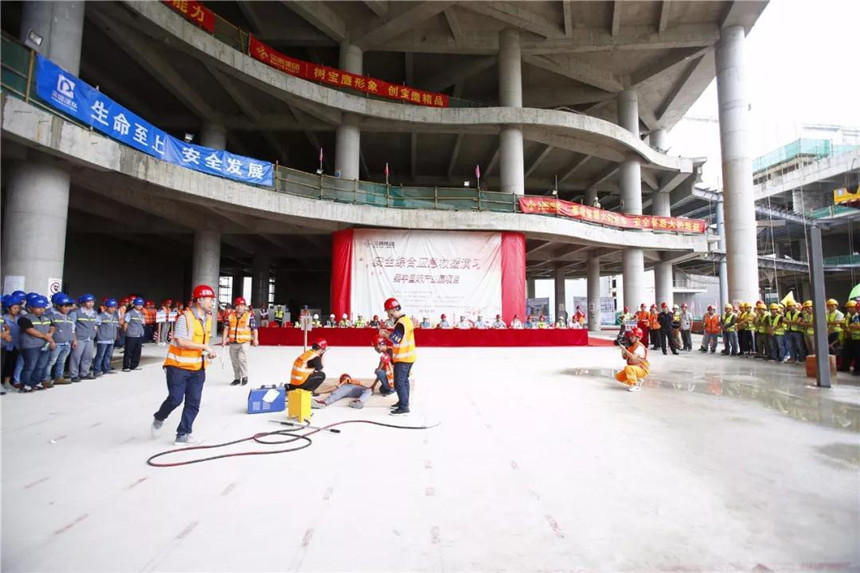 深圳柔宇顯示技術有限公司采購中心總監(jiān)張楊洋、廠務中心總監(jiān)熊成文、基建工程部經(jīng)理曹銀,世源科技工程有限公司安全經(jīng)理馬盼龍,廣州珠江工程建設監(jiān)理有限公司總監(jiān)關鍵剛、總監(jiān)代表張小曼,深圳泛華工程集團有限公司項目經(jīng)理陳琳、安全經(jīng)理彭衛(wèi)軍,寶鷹集團副總裁羅志龍參與演習。