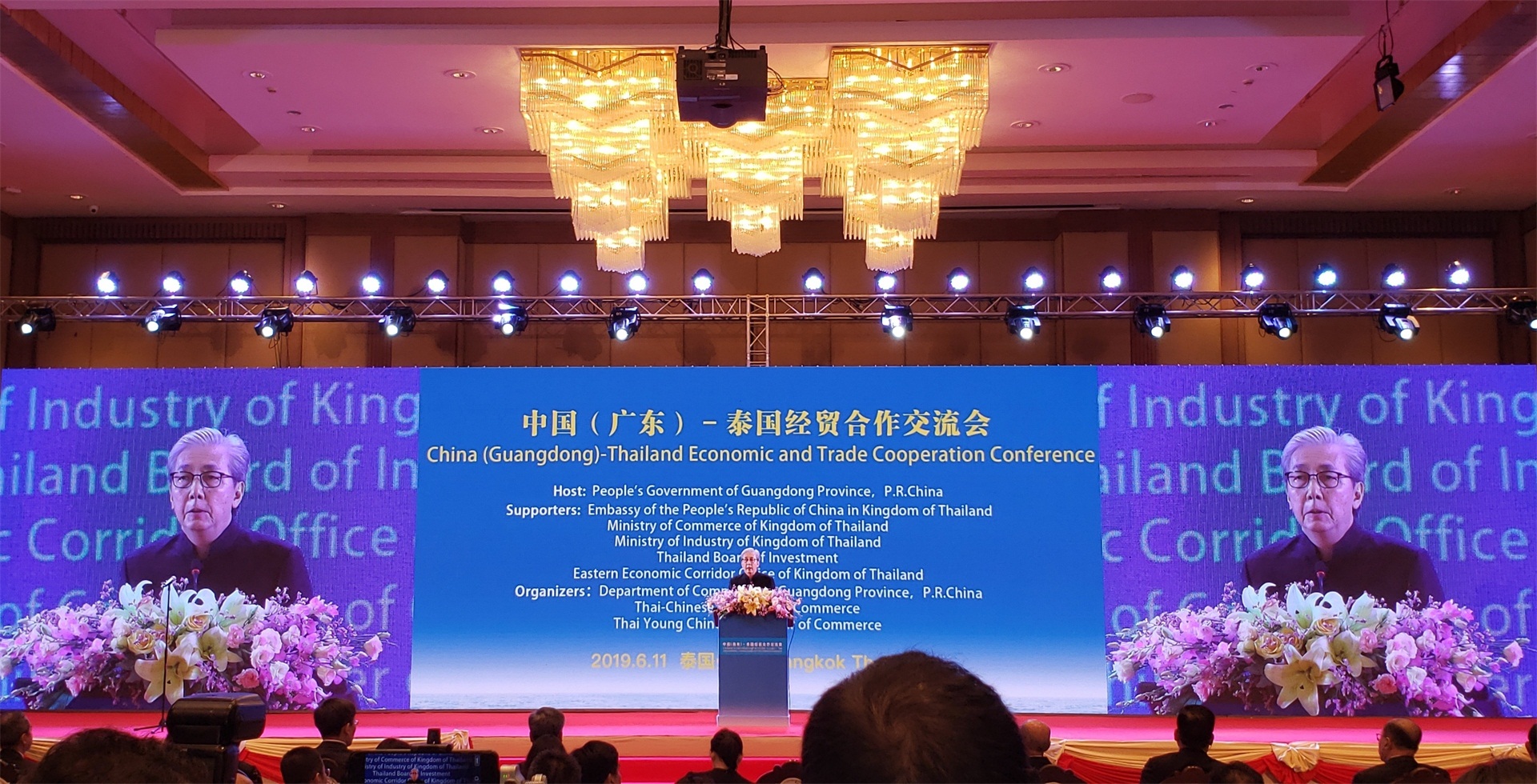 6月11日,中國(廣東)— 泰國經(jīng)貿(mào)合作交流會暨粵港灣大灣區(qū)推介會在曼谷舉辦。交流會由廣東省人民政府主辦、泰國中華總商會及泰國華人青年商會承辦。中泰兩國政界、商界代表共600多人出席交流會,圍繞“一帶一路”倡議、粵港澳大灣區(qū)建設與“泰國4.0”國家發(fā)展戰(zhàn)略、東部經(jīng)濟走廊建設的深度對接進行交流和探討。