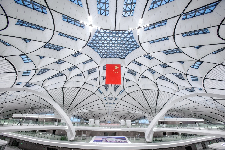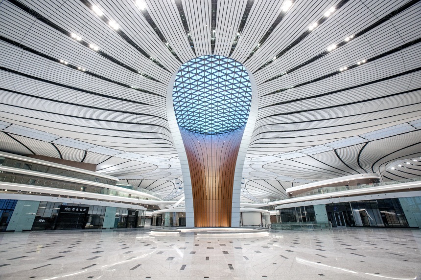 ▲北京大興國際機(jī)場航站樓內(nèi)景