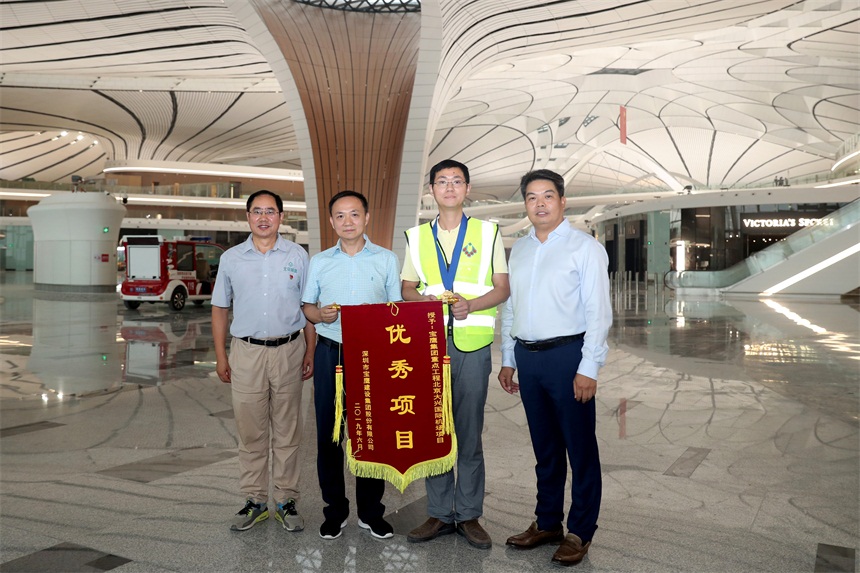 北京城建集團(tuán)工程總承包部北京大興國際機(jī)場主航站樓項目黨總支常務(wù)副書記趙海川盛贊寶鷹集團(tuán)參建者。他說,寶鷹集團(tuán)真正貫徹了總書記指出的要把北京大興國際機(jī)場打造成精品工程、樣板工程、平安工程、廉潔工程的指示精神。真正做到了安全、優(yōu)質(zhì)、高效,與所有參建者一同體現(xiàn)了大國工匠精神、勞模精神。期待寶鷹集團(tuán)與北京城建集團(tuán)能夠多合作,取得更多成果。