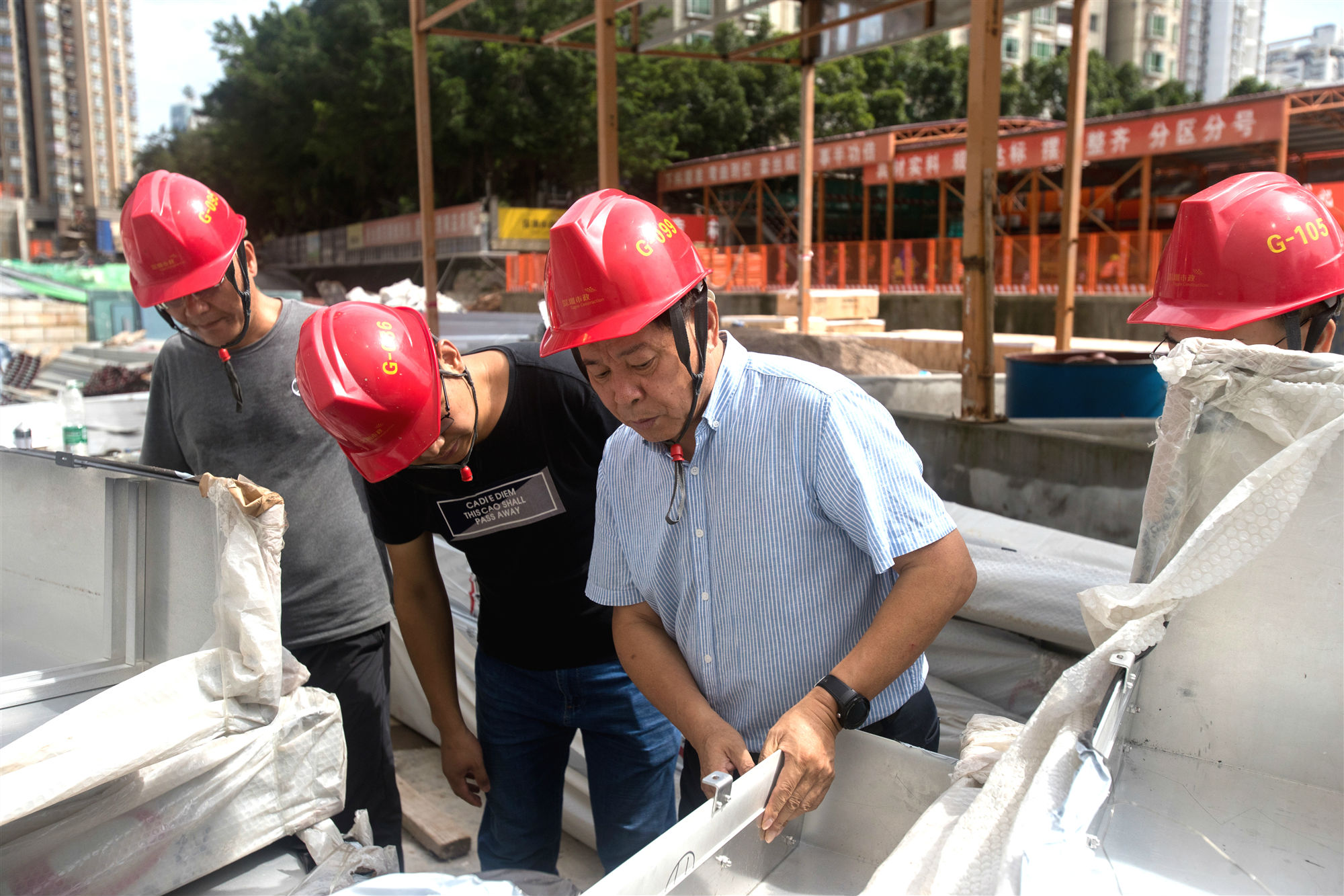 巡察中,萬樹春副總裁先后來到項目部、南苑A B棟施工區(qū)、材料堆放區(qū)等現(xiàn)場區(qū)域,就項目圖紙設計、項目施工進度、鋁板材料質(zhì)量等方面進行了詳細了解,并對出現(xiàn)的問題作出具體指示。