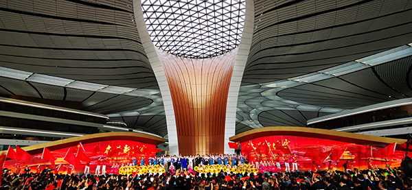 昨晚,央視一套播出了中央廣播電視總臺(tái)“心連心”藝術(shù)團(tuán)在北京大興國(guó)際機(jī)場(chǎng)錄制的以“奮斗新時(shí)代”、“中國(guó)一定行”為主題主線的慰問(wèn)演出。舞臺(tái)的主背景選擇在了由寶鷹集團(tuán)承建的西側(cè)雙曲造型C型柱。
