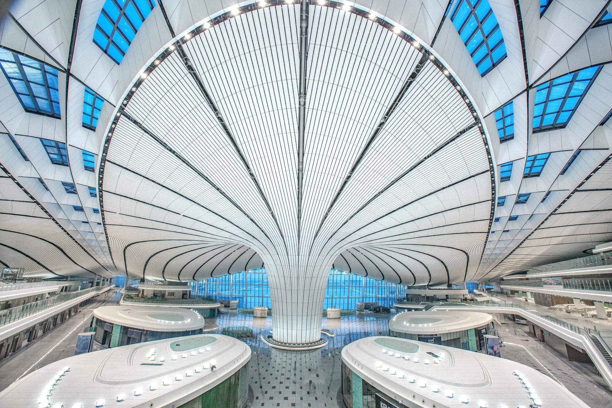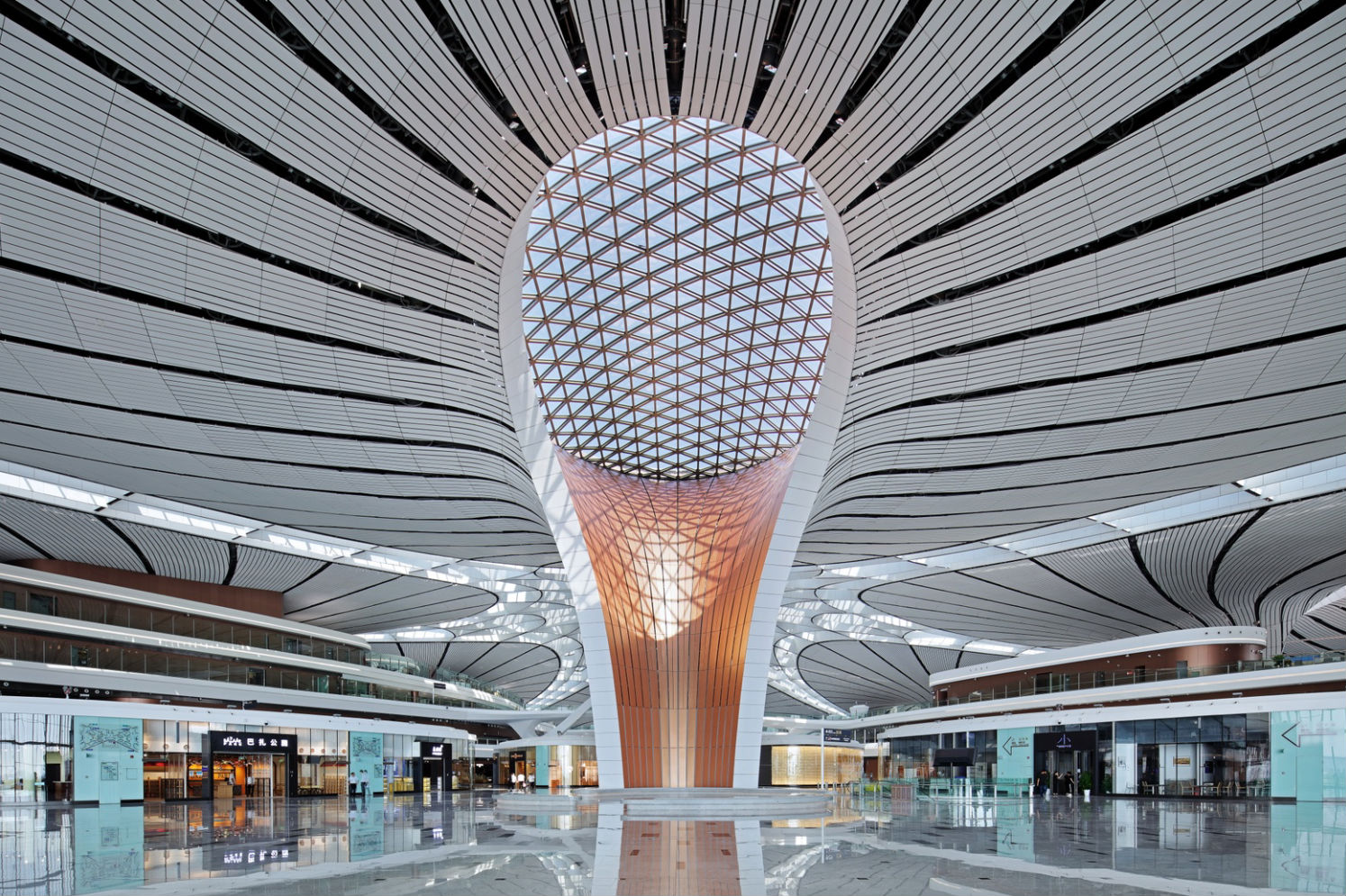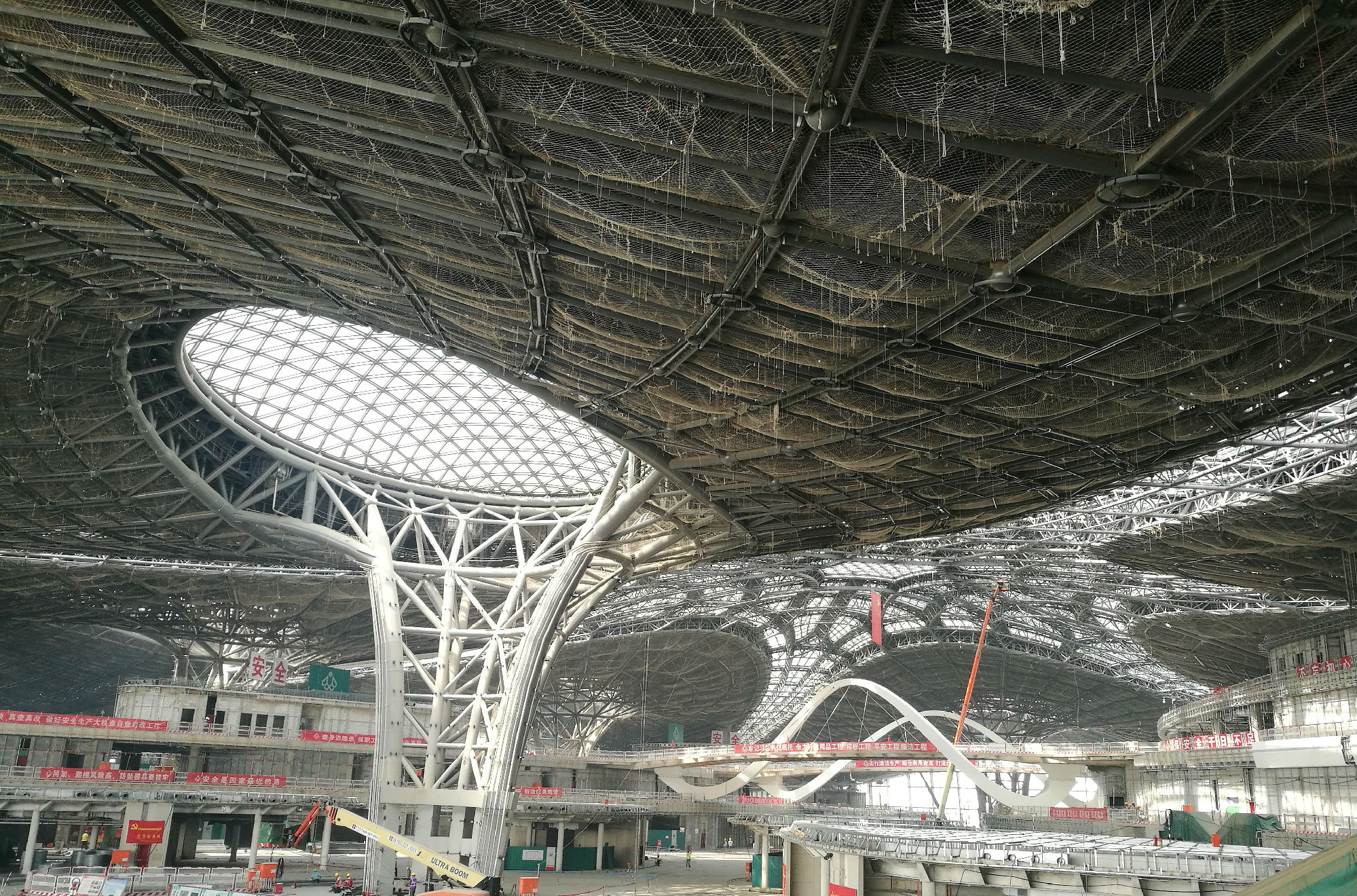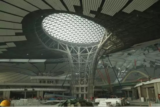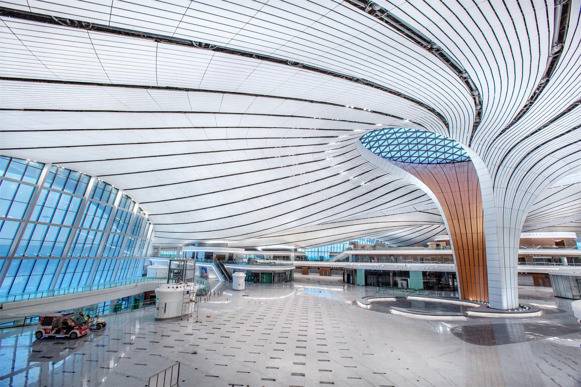 北京新機(jī)場(chǎng)旅客航站樓及綜合換乘中心建筑面積約60萬(wàn)平米,室內(nèi)雙曲面吊頂通過(guò)12處落地柱及8處C形柱下卷,與地面相接,形成如意祥云的整體意向。寶鷹集團(tuán)承建的北京大興國(guó)際機(jī)場(chǎng)精裝四標(biāo)段為整個(gè)機(jī)場(chǎng)旅客航站樓及綜合換乘中心核心區(qū)域,近5萬(wàn)平米的通透空間內(nèi)依托東、西兩側(cè)的兩處C型柱接天連地,氣勢(shì)恢宏。