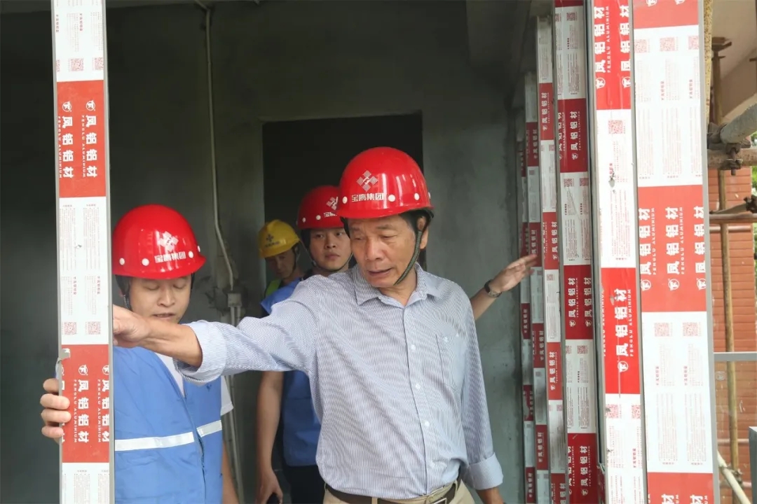 在德弘天下華府鋁合金門窗施工項(xiàng)目現(xiàn)場,寶鷹集團(tuán)副總裁葉肖亞就項(xiàng)目承攬、施工質(zhì)量、項(xiàng)目安全文明施工情況一一了解,還就施工中存在的困難及應(yīng)對措施、工程項(xiàng)目管控流程制度優(yōu)化等,與項(xiàng)目人員進(jìn)行了座談交流。他指出,工程質(zhì)量就是生命線,要嚴(yán)把質(zhì)量關(guān),同時(shí)注意安全文明施工事項(xiàng),以實(shí)際行動打造寶鷹精品工程。