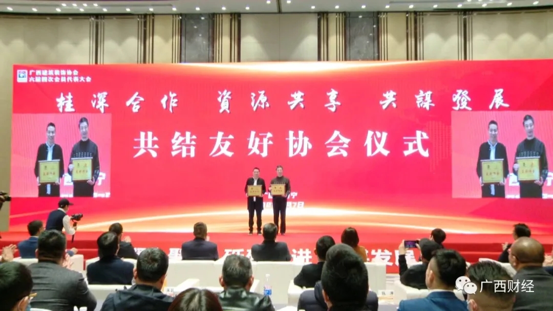 1月7日,廣西建筑裝飾協(xié)會六屆四次會員代表大會在南寧舉行,會上表彰了一批優(yōu)質(zhì)工程、先進企業(yè)、優(yōu)秀個人,而更重要的是,會上桂深兩地20家建筑裝飾企業(yè)開展簽約結(jié)對合作。