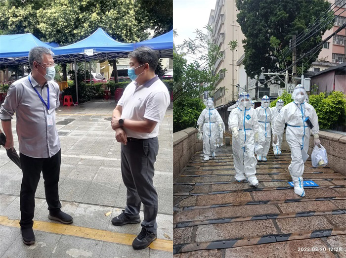 深圳市南山區(qū)政協(xié)副主席黃險峰到抗疫現(xiàn)場鼓勵和指導工作,深圳市南山區(qū)政協(xié)辦公室林樹瓊科長和志愿者一同戰(zhàn)疫。