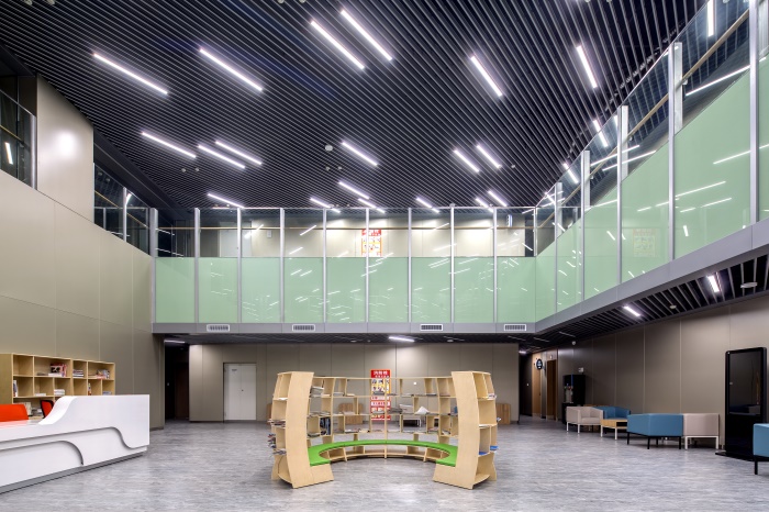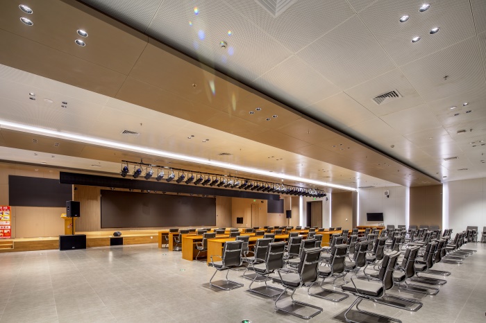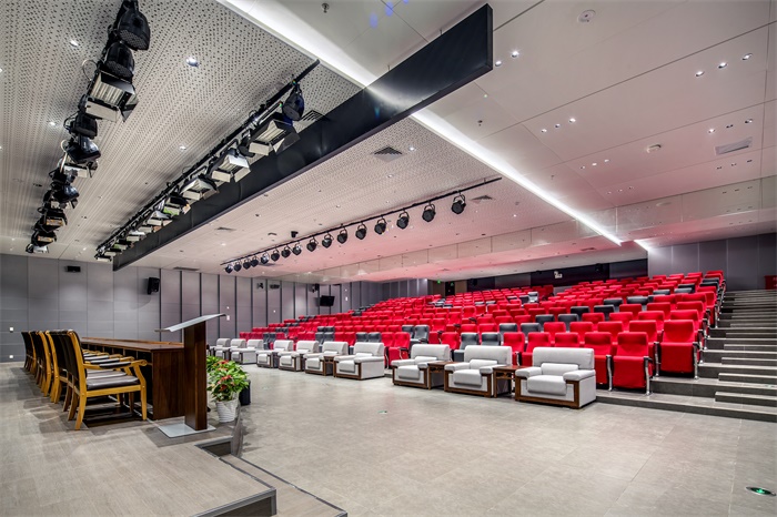 科普報告廳和科普劇場采用科技、簡約的裝飾風(fēng)格,注重其使用性。鋁板墻面、吊頂與場館的整體風(fēng)格相一致,整齊統(tǒng)一。場館是舉辦“科普大講堂”和“科普互動劇”表演的主要場所。