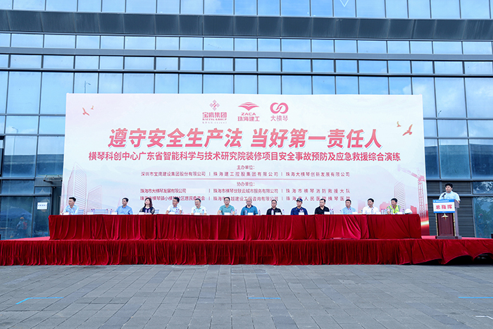 6月17日,由寶鷹集團(tuán)、珠海建工、珠海大橫琴聯(lián)合主辦安全事故預(yù)防及應(yīng)急救援綜合演練在珠海橫琴?gòu)V東省智能科學(xué)與技術(shù)研究院裝飾裝修項(xiàng)目舉行。