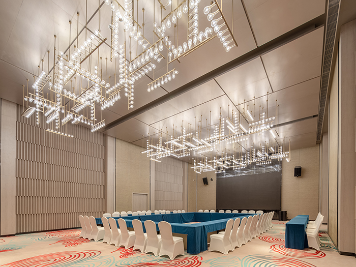 以文化為基礎(chǔ)、以藝術(shù)為載體。酒店多功能廳、宴會(huì)廳全部采用訂制的大型吊燈,搭配淺色墻面和印有文化符號(hào)的地毯,使整個(gè)空間簡潔商務(wù),既有南充特有的文化標(biāo)簽,又有凱悅酒店獨(dú)有的品牌調(diào)性。同時(shí),裝配的視聽系統(tǒng)、遠(yuǎn)程打印、視頻會(huì)議等智能設(shè)備,可以滿足商務(wù)會(huì)議、大型會(huì)展、婚禮等不同規(guī)格活動(dòng)需求。
