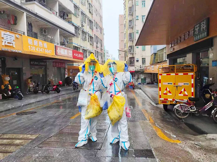 在寶鷹第五黨支部書記、副總裁陳貴涌的帶領(lǐng)下,志愿者們迅速集結(jié)到位,并在社區(qū)的協(xié)調(diào)安排下,快速化整為零,分成1個指揮組和多個網(wǎng)格行動小組,開展維護秩序、核酸檢測、做流調(diào)、環(huán)境消殺、垃圾清運、物資配送、配藥送菜、人員轉(zhuǎn)運等工作。大家相互配合,將各項工作安排得井井有條,有效消除了居民的焦慮情緒。