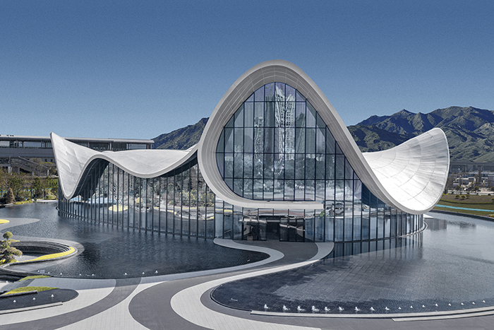項(xiàng)目位于肇慶市鼎湖區(qū),總建筑面積5105平方米,定位為世界級(jí)度假目的地。其展示中心設(shè)計(jì)靈感來(lái)源于肇慶著名的風(fēng)景區(qū)七星巖以及肇慶市花荷花。以特殊的建筑造型,成為展示國(guó)家度假區(qū)以及肇慶文化旅游的形象窗口。