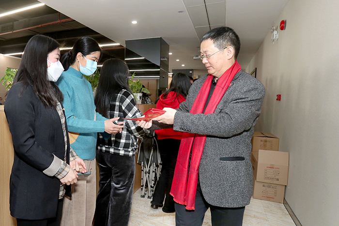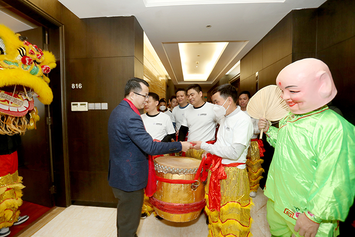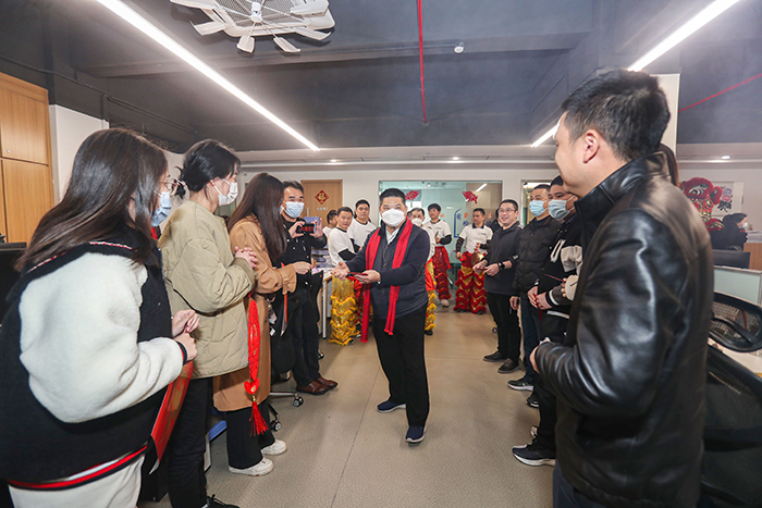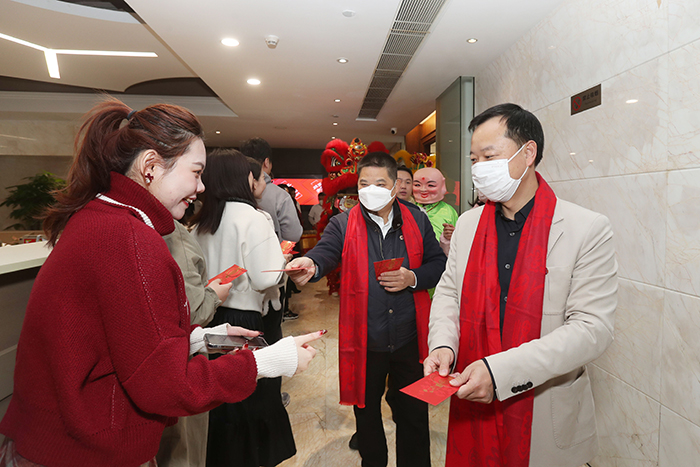 9點18分,伴隨著震耳的鞭炮聲和歡快的寶鷹醒獅隊鑼鼓聲,寶鷹股份副董事長兼總經(jīng)理古少波,寶鷹股份常務副總經(jīng)理、寶鷹建設董事長薛依東攜公司高管團隊向總部全體員工拜年,派發(fā)開工利是。懷著對未來的美好憧憬與期待,全體寶鷹人必將凝聚“一家人一條心一起干”的磅薄力量,擺出“開局就開戰(zhàn)、起步就起跑”的姿態(tài),同心同行啟航新征程。