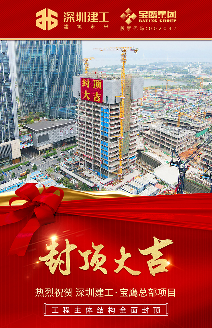 5月5日上午,由深圳建工控股與寶鷹股份共同投資建設(shè)的深圳建工·寶鷹總部項(xiàng)目主體結(jié)構(gòu)完成封頂,并舉行封頂儀式。