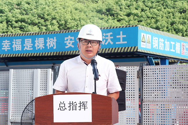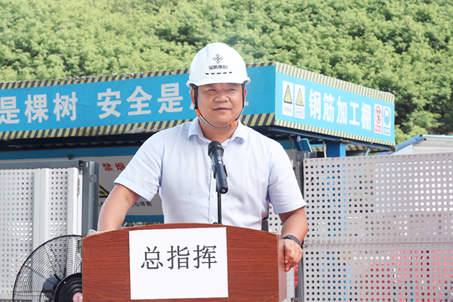 寶鷹建設(shè)集團董事長肖家河宣布演練開始