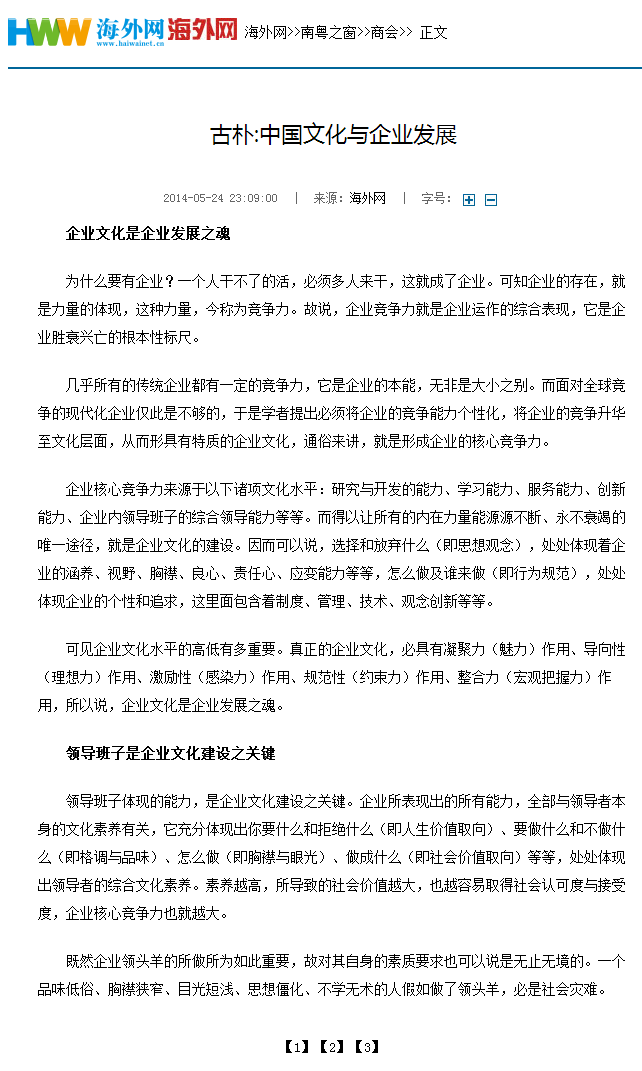 有高度中華文化修養(yǎng)的企業(yè)最具競爭力