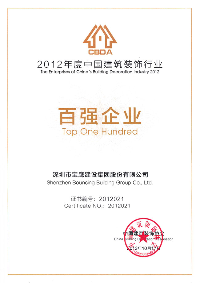 百?gòu)?qiáng)企業(yè)評(píng)介活動(dòng)從一個(gè)側(cè)面記錄了中國(guó)裝飾行業(yè)發(fā)展壯大的歷程,在一定程度上見證了中國(guó)優(yōu)秀裝飾企業(yè)的發(fā)展軌跡。百?gòu)?qiáng)企業(yè)稱號(hào)也將鞭策著寶鷹集團(tuán)持續(xù)塑造優(yōu)質(zhì)品牌,鼓勵(lì)著寶鷹人繼續(xù)發(fā)揚(yáng)“團(tuán)結(jié)、務(wù)實(shí)、奮斗、卓越”的精神,打造更多優(yōu)秀工程回饋社會(huì)。