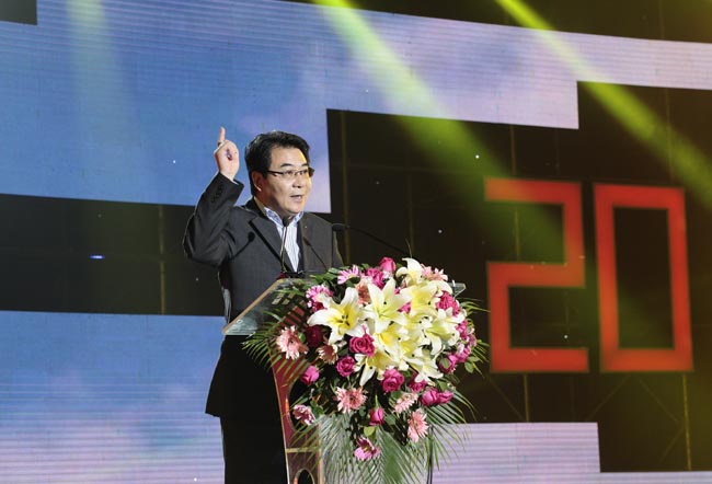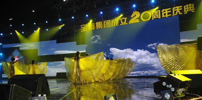 慶典活動(dòng)由廣東衛(wèi)視著名節(jié)目主持人王鵬、李佳聯(lián)袂主持,以古少明主席親筆題寫“感恩二十載,攜手創(chuàng)未來”的晚會(huì)活動(dòng)主題為開篇。慶典儀式上,古少明主席發(fā)表了熱情洋溢、充滿正能量的講話,對(duì)參加慶典活動(dòng)的各位領(lǐng)導(dǎo)和嘉賓表示了熱烈的歡迎,對(duì)創(chuàng)業(yè)領(lǐng)路人及長期以來關(guān)心、支持寶鷹事業(yè)發(fā)展的各級(jí)領(lǐng)導(dǎo)和社會(huì)各界人士表示了誠摯的謝意,他還回顧了寶鷹集團(tuán)由一個(gè)名不見經(jīng)傳的小公司發(fā)展到2013年年底成功上市并于近期布局移動(dòng)互聯(lián)網(wǎng)電商的征程,同時(shí)闡述了今后20年“寶鷹夢(mèng)”的內(nèi)涵,即“要繼續(xù)圍繞實(shí)現(xiàn)中國夢(mèng)的戰(zhàn)略發(fā)展黃金機(jī)遇,在繼續(xù)強(qiáng)化建筑裝飾業(yè)務(wù)主體的基礎(chǔ)上,實(shí)現(xiàn)寶鷹多元化、國際化的戰(zhàn)略構(gòu)想”。集團(tuán)領(lǐng)導(dǎo)古少波、成湘文也分別上臺(tái)致辭,全面回顧了寶鷹集團(tuán)自1994年成立以來的發(fā)展歷程,系統(tǒng)總結(jié)了過去20年的付出、收獲和經(jīng)驗(yàn),明確指出了今后一個(gè)時(shí)期的發(fā)展戰(zhàn)略和發(fā)展方針,號(hào)召全體員工萬眾一心、眾志成城為實(shí)現(xiàn)美麗的“寶鷹夢(mèng)”以及更偉大的“中國夢(mèng)”而努力奮斗。