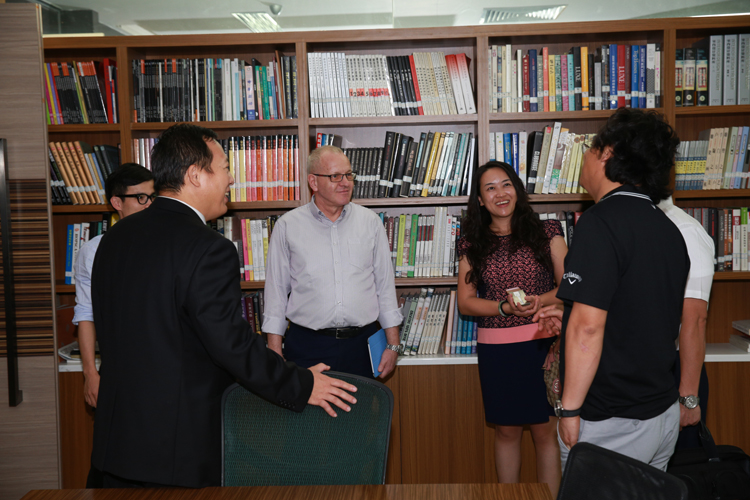 岡特?施特勞斯先生在和寶鷹集團設計院領導交談