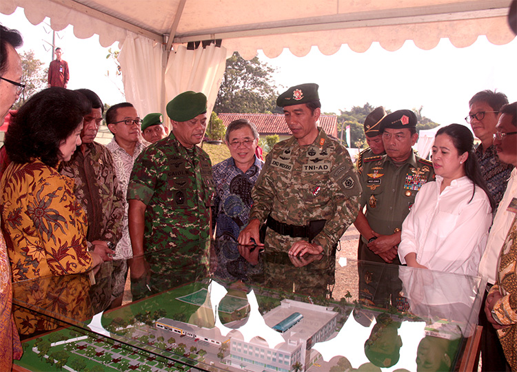由PULAUINTAN建筑公司和印尼寶鷹建設(shè)集團共同承建位于印尼雅加達的陸軍總醫(yī)院于5月13日下午舉行奠基儀式,佐科維總統(tǒng)、政治安全統(tǒng)籌部長Tedjo Edhy Purdijatno、衛(wèi)生部長Nila F Moeloek、刑警隊司令Budi Waseso,國軍總司令穆爾多科,全國27個軍區(qū)司令員及士兵、承建商代表及企業(yè)家約兩千人出席上述儀式。