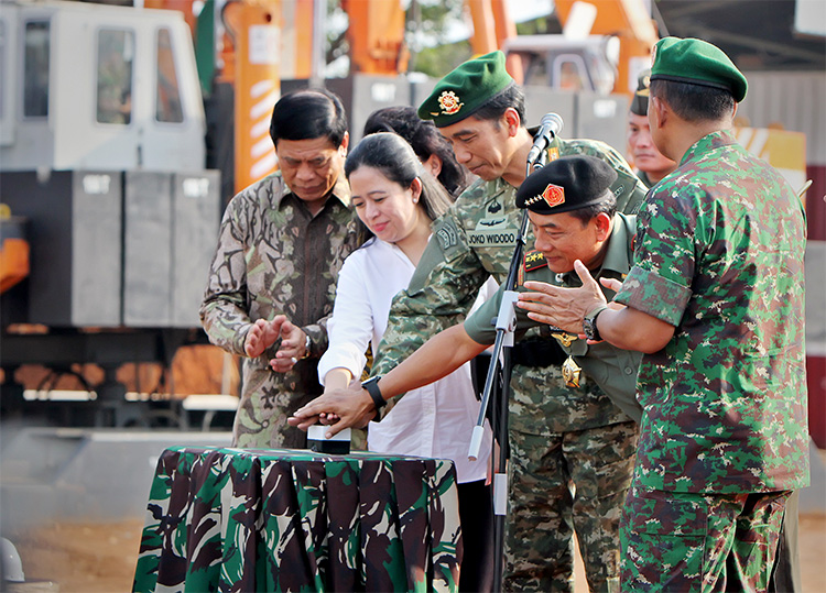 佐科維總統(tǒng)與各部長、軍區(qū)總司令等啟動奠基儀式