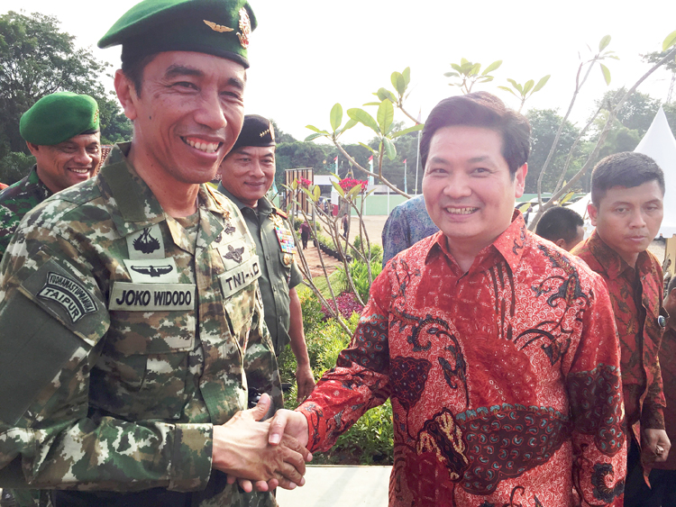 印尼總統(tǒng)佐科維與寶鷹集團董事局主席古少明親切握手并交談