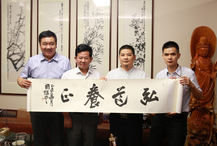 合影(左二為中國建筑裝飾協(xié)會總經(jīng)濟師、中裝新網(wǎng)CEO朱時均,右二為寶鷹集團副總裁古樸,左一衛(wèi)中裝新網(wǎng)副總編輯、《中華建筑報》深圳記者站站長仰光金,右一為寶鷹集團行政綜合部總經(jīng)理梁淞)