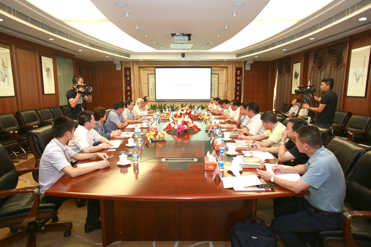 會談中,古少明主席從寶鷹集團登陸資本市場談起,詳細向梅州市黨政考察團介紹了寶鷹集團近幾年的發(fā)展情況和寶鷹集團未來發(fā)展戰(zhàn)略的三條主線:不斷做強做大傳統(tǒng)裝飾產(chǎn)業(yè)、繼續(xù)深耕“互聯(lián)網(wǎng)+”市場、果敢深化“一帶一路”戰(zhàn)略。熊德龍董事長歡迎梅州市領(lǐng)導參加十月份將于印尼舉辦的客商大會,繼續(xù)深化梅州與印尼經(jīng)濟的互通,實現(xiàn)新的雙贏,并向黃強市委書記匯報了印尼商人在梅州的投資情況和梅州在印尼企業(yè)的發(fā)展情況,詳談了熊氏集團與寶鷹集團在印尼合作的初步成果,最后暢敘自己和梅州的深厚感情,并鼓勵寶鷹集團要在梅州地區(qū)大力發(fā)展,建設(shè)客家人的共同故鄉(xiāng)。