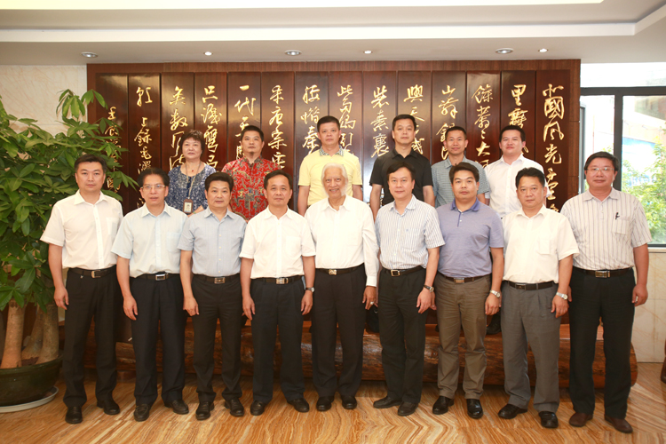 合影(前排左四為黃強書記,右四為譚君鐵市長,左五為熊德龍董事長,左三為古少明主席,右三為古少波董事長。)