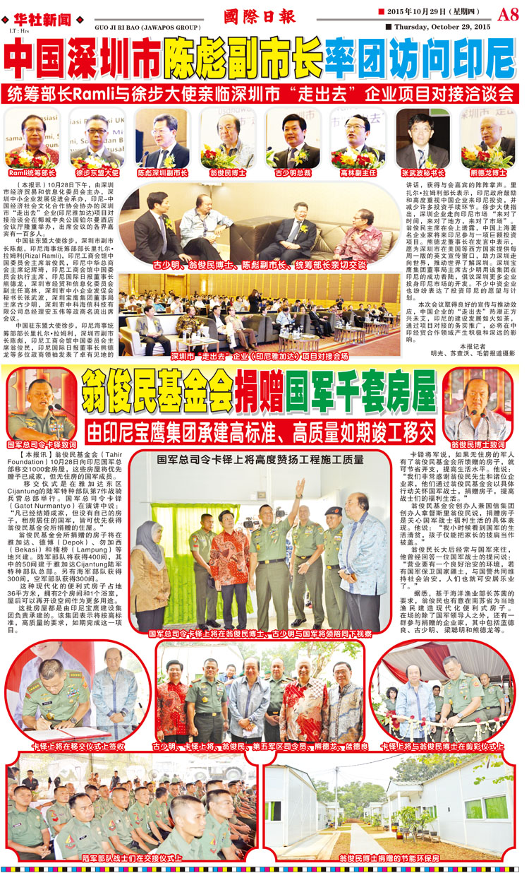 印尼《國際日報》專版報道在雅加達舉辦的“走出去”企業(yè)項目對接洽談會
