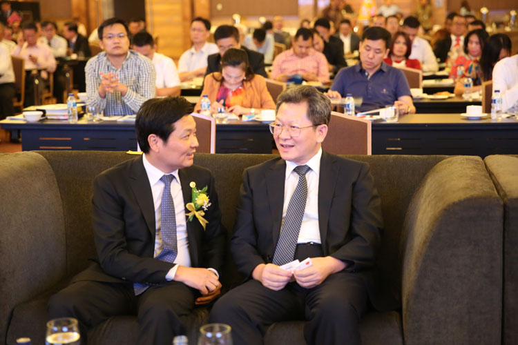 古少明主席(右一)與徐步大使(右二)、熊德龍董事長(左二)在洽談會現(xiàn)場