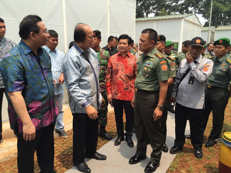 移交儀式上,翁俊民博士正式將已經(jīng)建成的環(huán)保節(jié)能房移交于印尼國(guó)軍總部。這批房屋由印尼寶鷹建設(shè)集團(tuán)負(fù)責(zé)承建,并高質(zhì)量高標(biāo)準(zhǔn)地按時(shí)完成了施工。本次興建的房屋均為節(jié)能環(huán)保的便利式房屋,這些房子分別位于雅加達(dá)、德博、勿加西和楠榜等地,將分配給印尼陸軍、海軍和空軍使用。