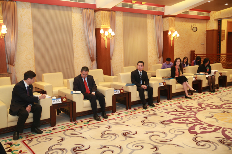寶鷹廣東外語外貿(mào)大學(xué)黨委書記隋廣軍、副校長何傳添等校領(lǐng)導(dǎo)盛情接待了古少明主席一行,并于行政辦公樓會議室與古少明主席進(jìn)行洽談。