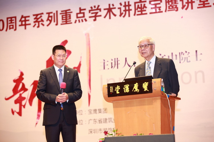 4日下午,寶鷹講堂第十講在廣東外語(yǔ)外貿(mào)大學(xué)舉辦,主講人為世界橋梁大師鄧文中院士,廣東外語(yǔ)外貿(mào)大學(xué)校長(zhǎng)仲偉合主持講堂,廣東省建筑業(yè)協(xié)會(huì)會(huì)長(zhǎng)梁劍明致辭,寶鷹講堂創(chuàng)始人、寶鷹集團(tuán)董事副總裁古樸以簡(jiǎn)短精彩發(fā)言開(kāi)啟講堂,鄧文中院士帶來(lái)了以《創(chuàng)新》為題的精彩講座。鄧文中院士以“533”的巧妙結(jié)構(gòu)向與會(huì)嘉賓和廣外學(xué)子講述了創(chuàng)新的方方面面,令人耳目一新。
