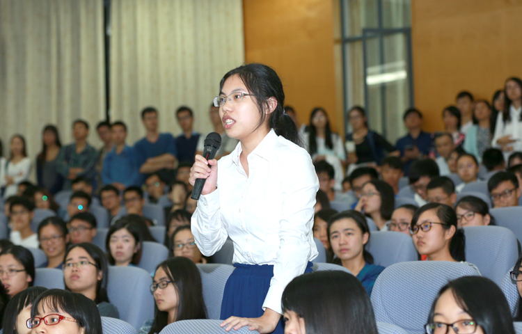 仲偉合校長(zhǎng)主持學(xué)生提問(wèn)環(huán)節(jié)