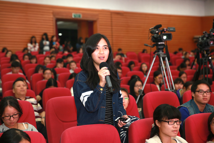 廣外學(xué)生向鄧文中教授提問(wèn)