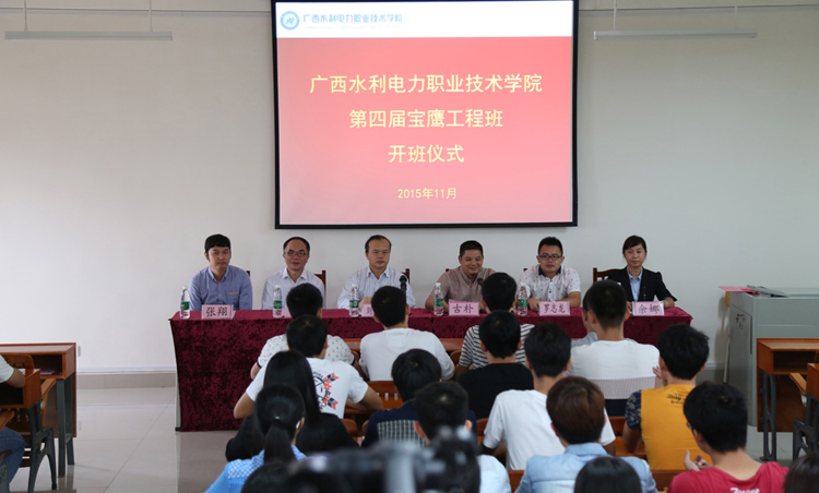 11月23日,廣西水利電力職業(yè)技術(shù)學(xué)院第四屆寶鷹工程班開班儀式在寶鷹建筑實(shí)訓(xùn)中心隆重舉行。廣西水利電力職業(yè)技術(shù)學(xué)院院長劉延明,寶鷹集團(tuán)董事副總裁古樸、總裁助理羅志龍等出席了開班儀式,建筑工程系教師代表、“寶鷹工程班”84名學(xué)生參加了開班儀式。
