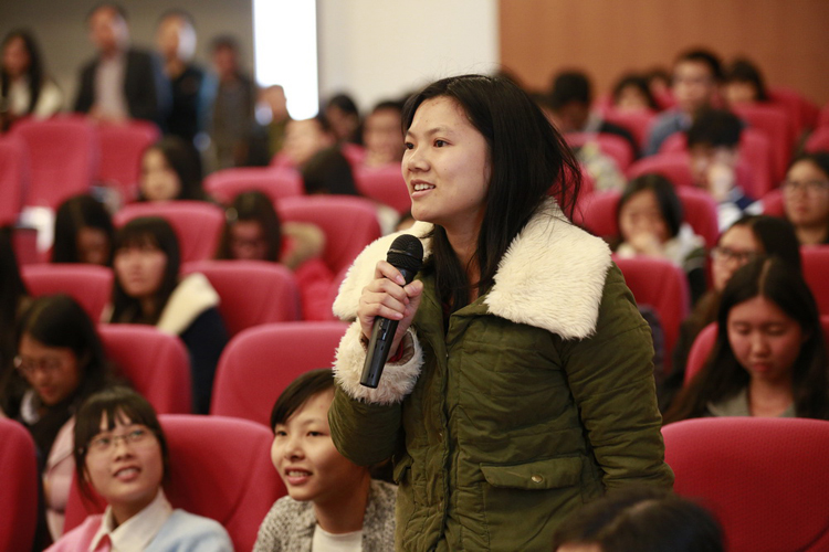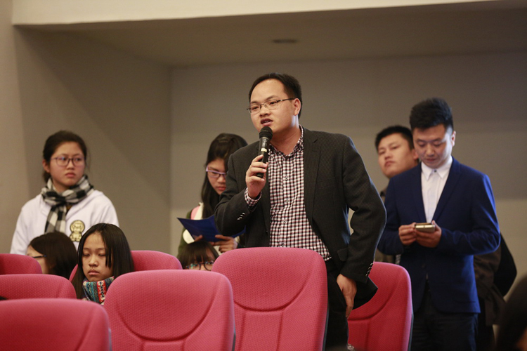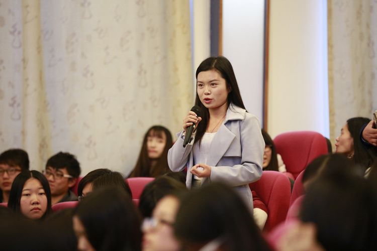 演講結(jié)尾,古樸副總裁還就學(xué)生們關(guān)心的問題進(jìn)行了互動(dòng)交流,現(xiàn)場(chǎng)氣氛熱烈。面對(duì)廣外商學(xué)院的教師提出的網(wǎng)絡(luò)大V傳播出的負(fù)能量會(huì)對(duì)學(xué)生產(chǎn)生誤導(dǎo)的問題,古樸副總裁睿智地以“發(fā)心”為關(guān)鍵點(diǎn),詳細(xì)剖析了網(wǎng)絡(luò)負(fù)能量的方方面面,并為青年學(xué)子提出了針對(duì)性的意見。