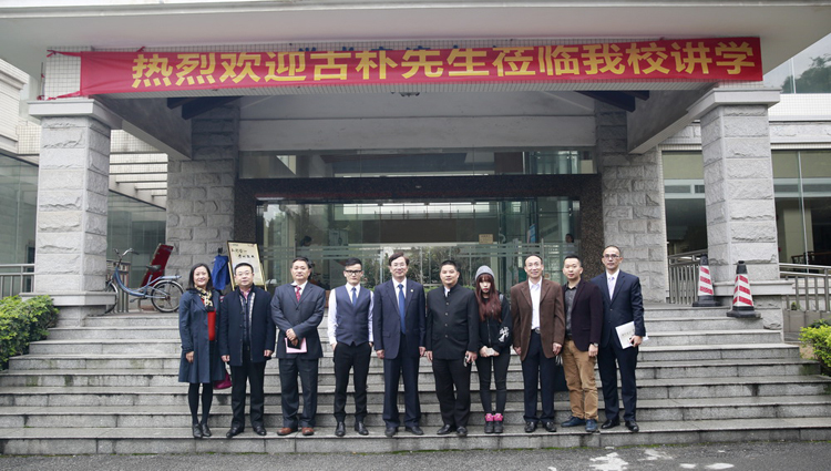 ▲合影(左五:何傳添副校長;右五:古樸副總裁;左四:吳義課總裁助理;左三:朱文仲執(zhí)行院長;右三:羅海洋黨委副書記;左二:袁登華副院長;左一:梁潔副院長。)