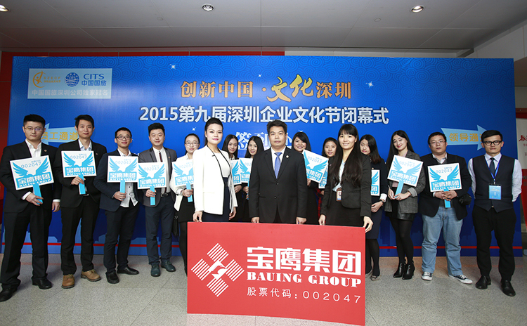 12月15日,由深圳市企業(yè)聯(lián)合會(huì)、深圳市企業(yè)家協(xié)會(huì)、深圳市企業(yè)文化研究會(huì)、深圳廣播電影電視集團(tuán)和深圳報(bào)業(yè)集團(tuán)聯(lián)合主辦的2015第九屆深圳企業(yè)文化節(jié)頒獎(jiǎng)典禮于深圳市民中心大禮堂盛大舉行,各級(jí)領(lǐng)導(dǎo)、126家企業(yè)的企業(yè)代表、媒體記者等人員共同參加了此次頒獎(jiǎng)典禮。寶鷹集團(tuán)董事局主席古少明,寶鷹股份董事長(zhǎng)古少波,總裁助理、人力資源部總經(jīng)理吳義課,文化品牌部總經(jīng)理董賓及各部門員工代表出席了此次頒獎(jiǎng)典禮。
