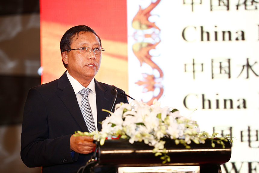▲緬甸駐華大使蒂林翁宣讀“2015中國(guó)走進(jìn)東盟十大成功企業(yè)”名單