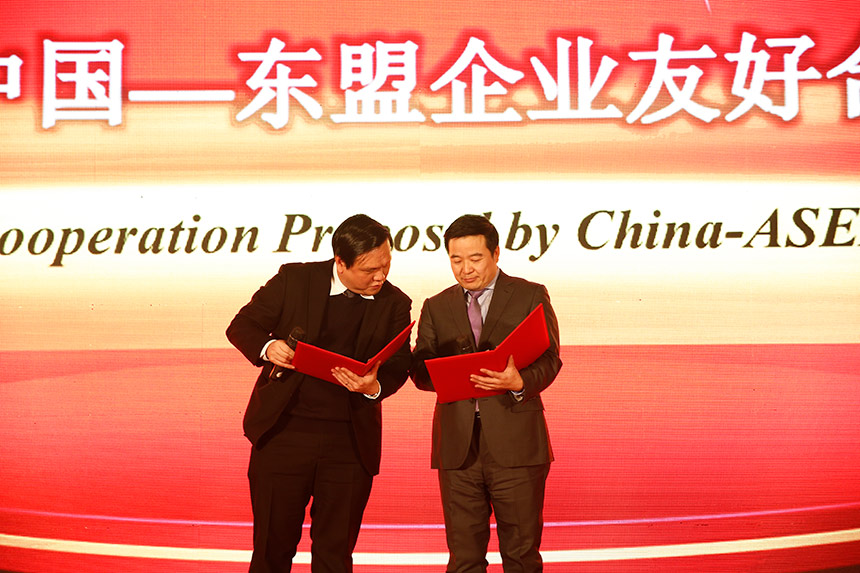 ▲中國(guó)與東盟企業(yè)代表一起宣讀《2016中國(guó)—東盟企業(yè)友好合作倡議書》